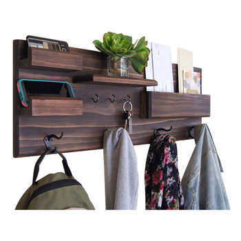Parete di legno Mensola Con Un Panno Gancio di Supporto Posta di Ingresso Organizer Appendiabiti Cremagliera chiave